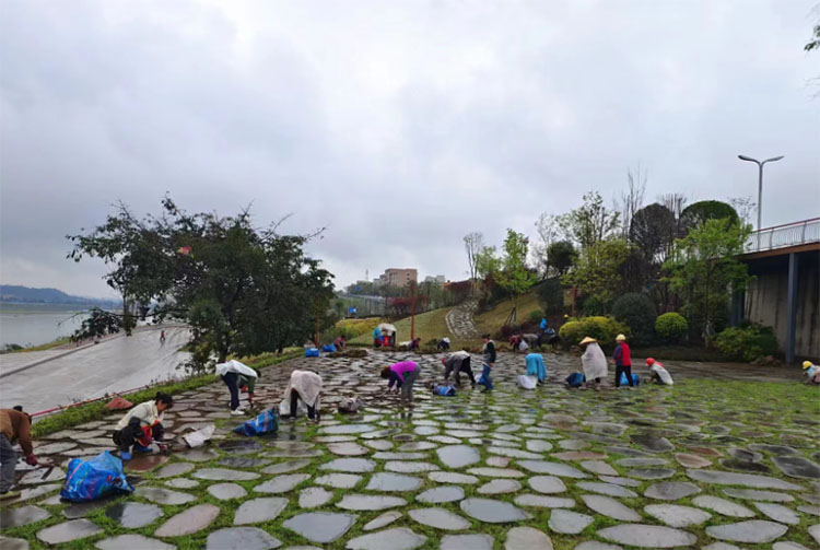 在長(cháng)江濱江公園、小關(guān)門(mén)、三道橋、恒大御江灣、四公里等維護綠地,隨處可見(jiàn)身穿綠色工作服的興綠園林公司綠化工人忙碌的身影,他們除草、松土、補植、澆水、打支撐,最后清潔場(chǎng)地,分工合作,井然有序,一片繁忙的景象。