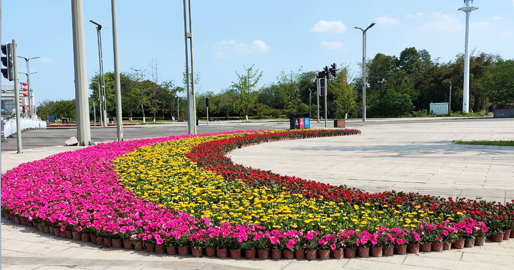 按照市委、市政府下達的氛圍營(yíng)造任務(wù),興綠園林公司高效組織、上下聯(lián)動(dòng),經(jīng)過(guò)多次現場(chǎng)踏勘,制定了鮮花擺放設計方案。以會(huì )展中心外圍及酒谷大道隔離帶、街邊綠地為重點(diǎn),采用栽植紅色和黃色的鮮花,突出色彩對比,形成視覺(jué)上的沖擊,營(yíng)造更好的感官體驗,確保酒博會(huì )期間管護范圍內的植物生機盎然、整潔美觀(guān)。